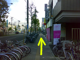 ●そのまままっすぐ歩道を進みます。 信号を1つ渡ってから少し進むと、右手にお店が見えてきます。 |