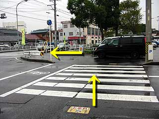 ●1つ目の横断歩道を渡ったら左に進みます。 | ||