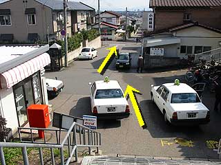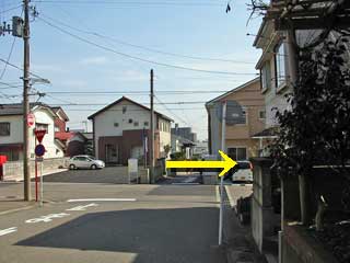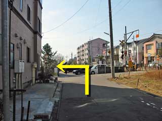 ●先が細い道路になっている交差点にたどりついたら、右に曲がります。 (地図で言うとこの辺) |