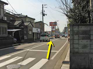 ●ちょっと交通量の多い道ですが、車に気をつけてつきあたりまで歩きます。 |
