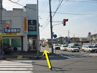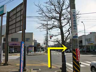 ●二つ目の信号で、横断歩道を渡り、交差点を右折します。 (地図で言うとこの辺) |