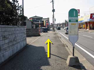 ●道なりにひたすらまっすぐ歩きます。 (横断歩道で道路の反対側にわたっておきましょう。) 途中、中型スーパーなどがありますが、かまわずまっすぐ歩きます。 |