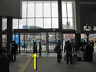 ●改札口を抜け、正面の出口から外に出ます。 外に出たら、まっすぐバス乗り場に向かいます。 |