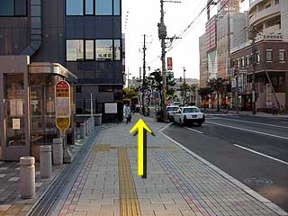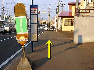 ●歩道を歩くと、左手目の前にバス停がありますが、無視して先に進みます。 | ||