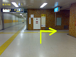 ●途中、3番出口に進む曲がり角がありますので、右に曲がって地上に出ます。 | ||