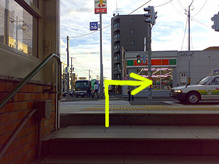 ●地上に出たら、横断歩道を渡り、右に進みます。 | ||
