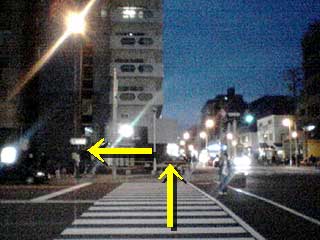 ●次の信号まで歩道をまっすぐ歩きます。 (地下鉄で麻生方面から来た場合、駅から外に出てまっすぐ横断歩道を渡ると、ここに到着します。) |