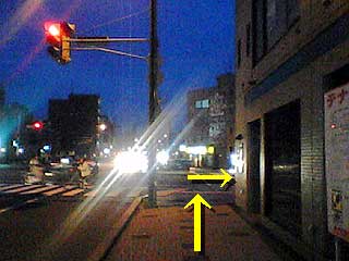 ●信号の角に着いたら、横断歩道を渡らずにそのまま右に曲がります。 | ||