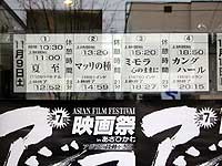 店の方と話をしながら食事をしていると、これから映画祭に行くという店の常連客が訪れました。 しばらく3人で会話した後、彼といっしょに会場に行きました。 会場に到着すると、おなじみ映画祭の黒いポスターや、上映作品のポスター、そして映画祭のノボリが飾られておりました。 チケットを切ってもらい入場すると、ロビーには、上映作品のポスターやパンフレットを販売してありました。 今まで買いそびれた作品のパンフを買う良い機会ではないかと思います。 今まで買う機会のなかったマッリの種のポスターとパンフレットを買うことができてよかったです。 |