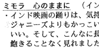 | また、旭川映画村で出している小冊子(フリーペーパー)「ガムボ」第8号で、インド映画の紹介ページがあったので、こちらも勝手に紹介しちゃいます。 「マサラムービー二本立」と題して、アンジャリとDDLJを上手なイラストつきで紹介されております。 有名なDDLJならまだしも、アンジャリを取り上げてるのには正直驚いてしまいました。 この筆者は、今年の夏のDDLJの上映会には行かれたんでしょうかねぇ。 冊子で読みたい人は、旭川市内でゲットしてください。 (画像をクリックすると、別窓を開いて全文読めるようになっています。) |