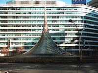 おなじみ。名駅前の「飛翔」。 でも、この渦巻状のオブジェを知っている人はいても、「飛翔」という名前を知らない人って多いのではないのだろうか。 映画では、ヴィジャイとソナが「飛翔」の上で手をつないで踊っています。(飛翔の右下の部分)日本人の感覚では考えられません。 |