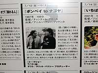 2002/07/12 午後 シネマスコーレにて… 名古屋空港に到着して栄行きのバスに乗ってホテルにチェックインしてから、名駅に行くつもりでしたが、 目の前には名駅行き直行バスがあったので、それに乗車して名駅に行きました。 せっかく名駅に行ったのだから、シネマスコーレにたち寄ってボンナゴ上映のチラシをゲットしようと思いました。 シネマスコーレに立ち入り、シネマスコーレの人に札幌からボンナゴを観に行ったことを話すと、熱心なぼんなごファンの方を紹介されてしまい 忙しい仕事の合間をぬって、小一時間以上ぼんなごのはなしで盛り上がってしまいました。 そのとき聞いた情報は以下のとおり。 ●ラリットさんは体調不良のため日本に来ない。 ●上映するフィルムは、チラシにかかれている東京ファンタ版ではない。 ●ロケ地「サーカスサーカス」は栄の近くにある。 ●ロケ地になった名鉄新名古屋駅の改札口は、多少わかりづらい場所にある。 など、札幌にへばりついているとなかなか入手できない情報でした。 とてもありがたいです。 |