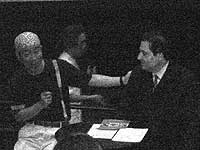 時間になり、トークショーが始まりました。 司会の方と、原さんのトークで進行しです。 撮影は1991年、インドでの上映が1995年、名古屋での上映が1997年…と、撮影と上映の間が結構長いねという話や インドで上映した後で名古屋に行くインド人が増えたこと、とある州(聞き逃しました)では、ヒット作品だったこと、 歌舞伎についてなどなど、ぼんなごにまつわる愉快なエピソードを語ってくれました。 トークで盛り上がっているときに、なんと!来ないはずのラリットさんがぼんなごパンフレットを片手に途中入場したではありませんか。 ラリットさんを交えて3人のトークになったわけですが、インターネットのホームページでロケ地を紹介している熱心なファンがいるという話がありまして しかも札幌からここに観に来ていると言ってるのだから、まさに私のことです。 ラリットさんは、私のWebページを見ていたわけなんですね。 ということは、事実上のプロデューサ公認ページってことになるんじゃない? トークショーの最後に私が歌舞伎についての質問をして、上映開始となりました。 |