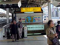 次に、「北出口」か「南出口」かという問題が出てきます。 私は「ひかり」の「自由席」に乗車したので、生活創庫が正面に見える「北出口」で降りましたし、 新大阪に戻るときも、生活創庫が正面に見える「北出口」付近の乗り場で乗車しました。 ということで、「下り線」ホームの「北出口」付近がダニーの下車した場所だと特定できます。 もっと詳しく言いますと、「ひかりの5号車(自由席)乗車位置」を目安にさがすとよいと思います。 |