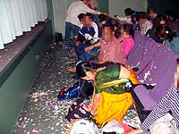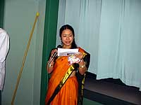 アルナーチャラムの上映開始前に、マサラシステム仕掛け人もとはなさんによる、お馴染みラジニ秘蔵映像や福岡でのサウンダリア来日レポート、そしててつのすけさんによるラジニ最新作BABA(バーバー)のチェンナイレポートが上映されました。 秘蔵映像の段階ですでにクラッカーを鳴らしている人がいるぐらいで、「楽しみはアルナーチャラムまでとっとけ」とお思いでしょうが、「どうせなら全部楽しまんかい」と言わんばかりの盛り上がりです。 |