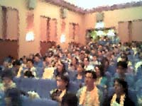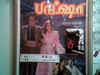 画像では歯抜けのように席が空いていますが、そのあとに劇場の人から空席を詰めて多くの人に座れるように指示が出たので、結局満席御礼。立ち見も出ました。 (肖像権の配慮のため、観客の顔は画像処理をかけて第3者に判らないようにしてあります。) 私の席も回りに空席があったので詰めて席を空けましたが、私の隣に座ったのがインド人でした。デリー出身だそうでタミル語はわからないとの事。日本語は大丈夫みたいで字幕を追っていた模様です。でも、バーシャってボンベイのシーンもあることだし、ヒンディ語も劇中にちらほらでてくるんですよね。ボンベイのシーン以外にも、前半部でプリヤがリクシャーに忘た袋をマニカムが届けるシーンでキーシャバ家の門番はヒンディ語を使っていました。 |