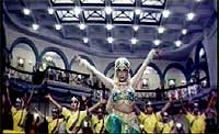まずは、札幌で公開された「パダヤッパ」の1シーンをご覧下さい。 パダヤッパ屋敷(前半)でニーランバリが踊っているシーンです。 天井の四角く光っている照明がありますね。 |